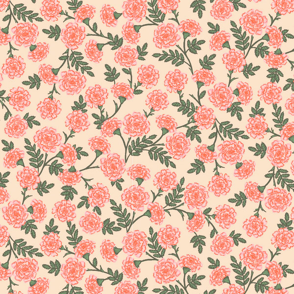 Tissu Rifle Paper Co Primavera Fleurs Mini Corail Rose