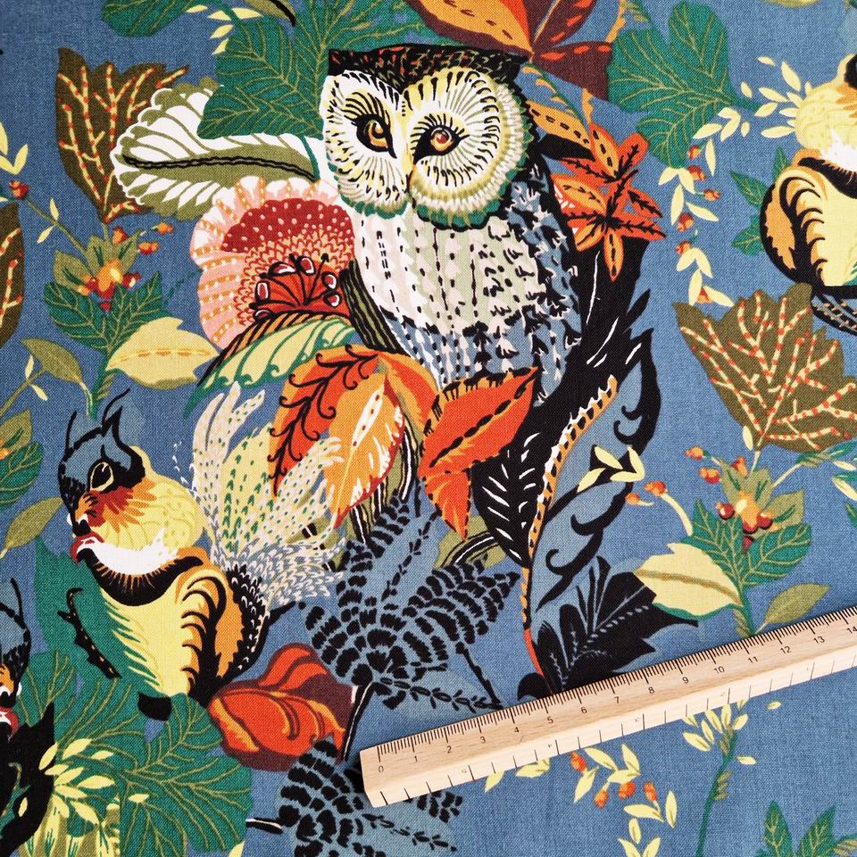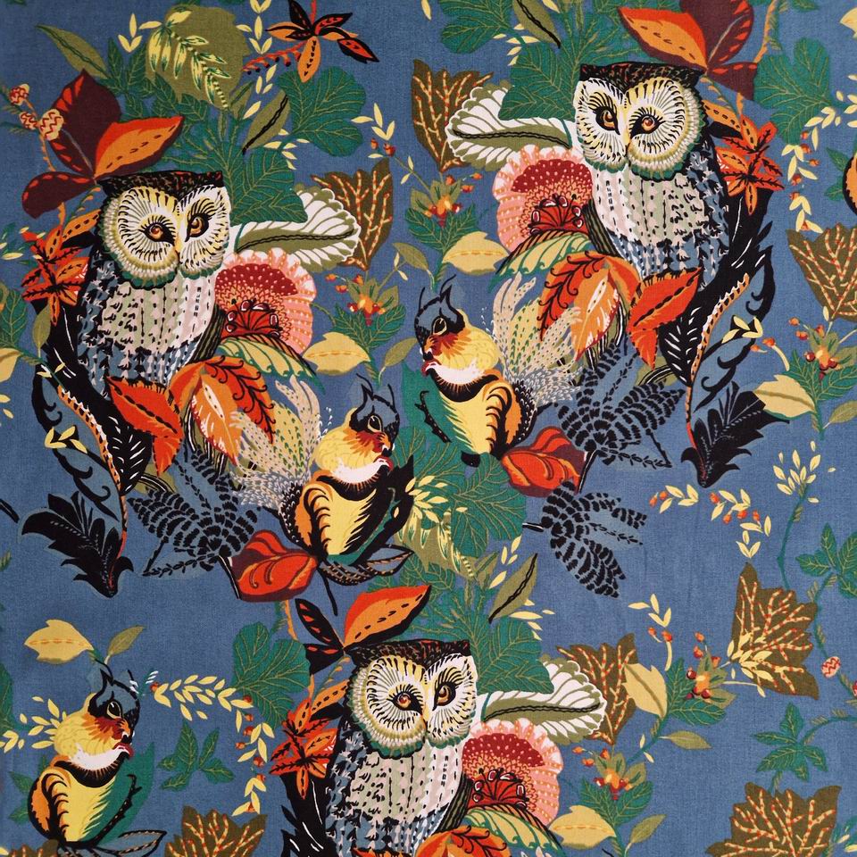 Tissu Chouettes Bleu Paon