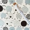 Coton imprimé ultra graphique, sur ce fond naturel une multitude de déclinaisons graphiqus autour du mouton, noir, gris .