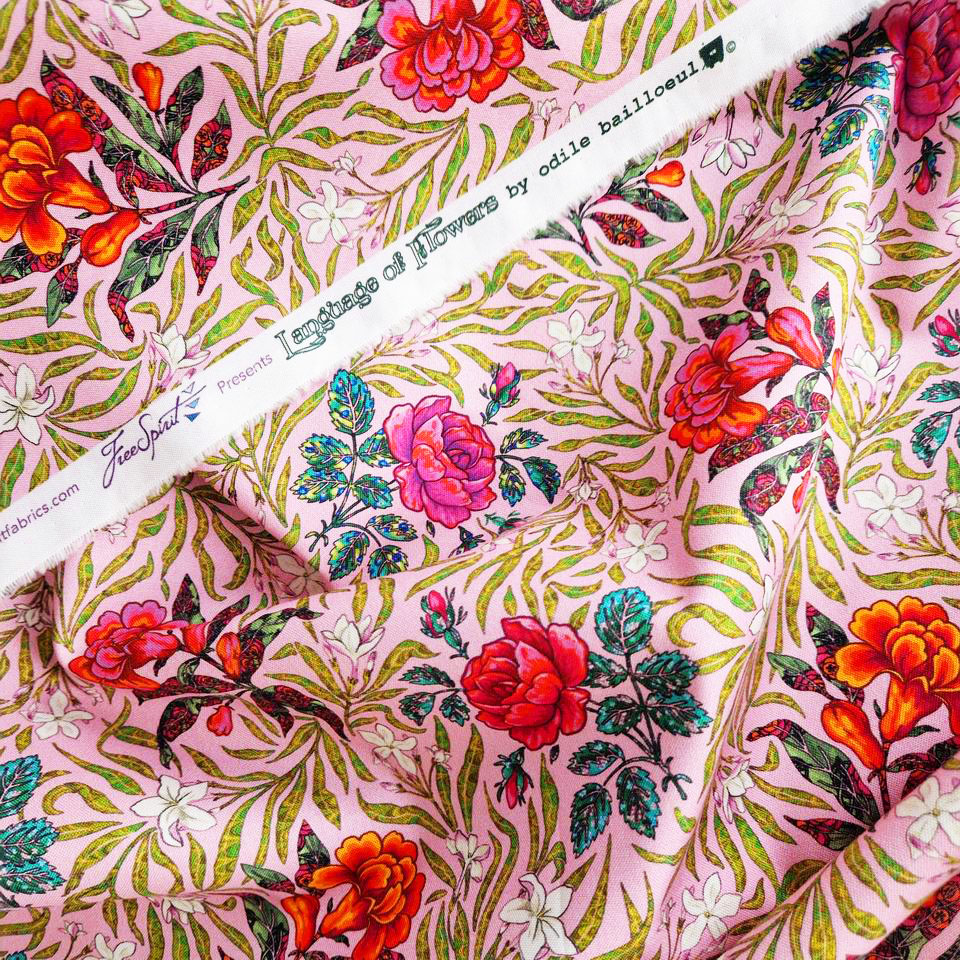 Le Langage des Fleurs est une collection de tissus créée par Odile Bailloeul éditée chez Free Spirit.
