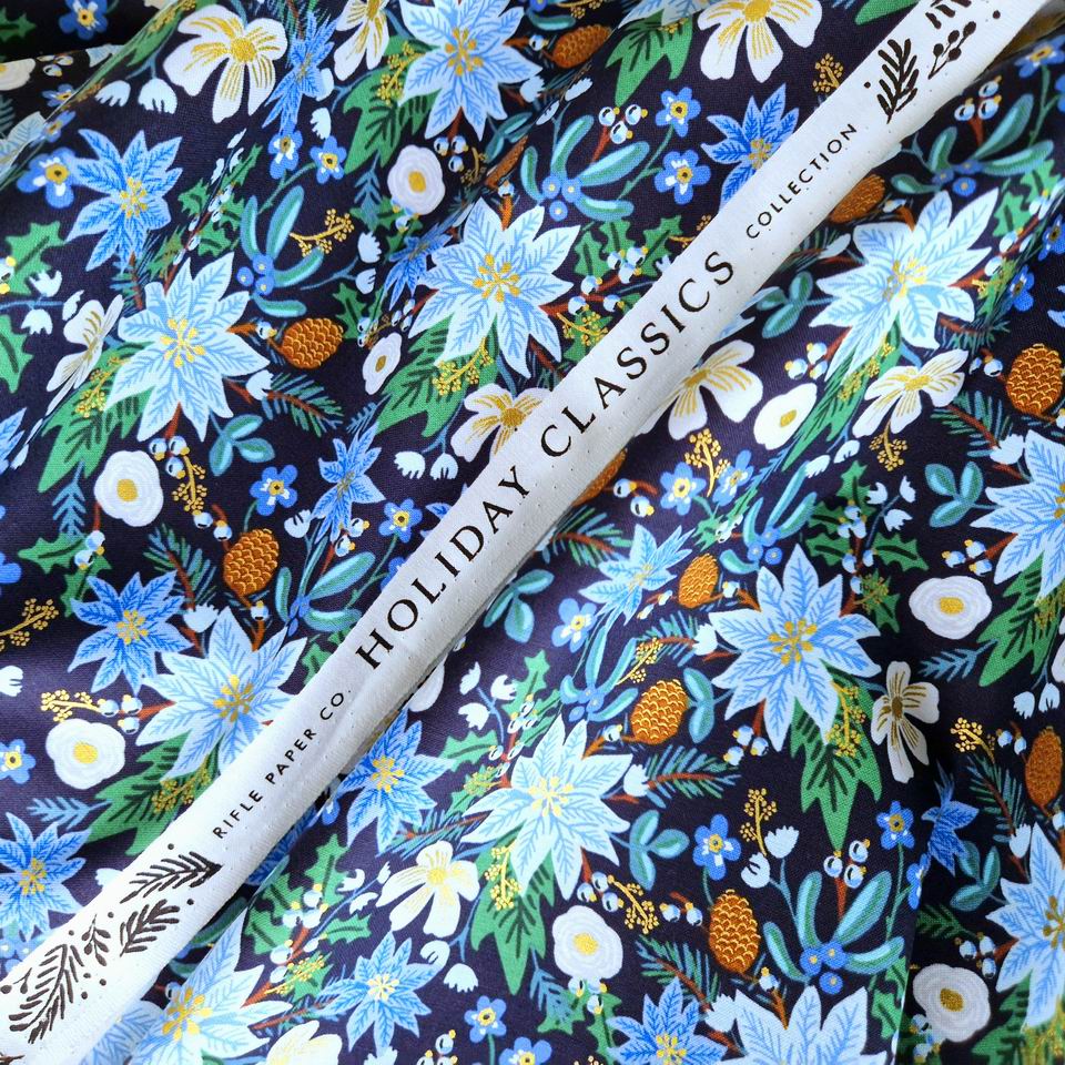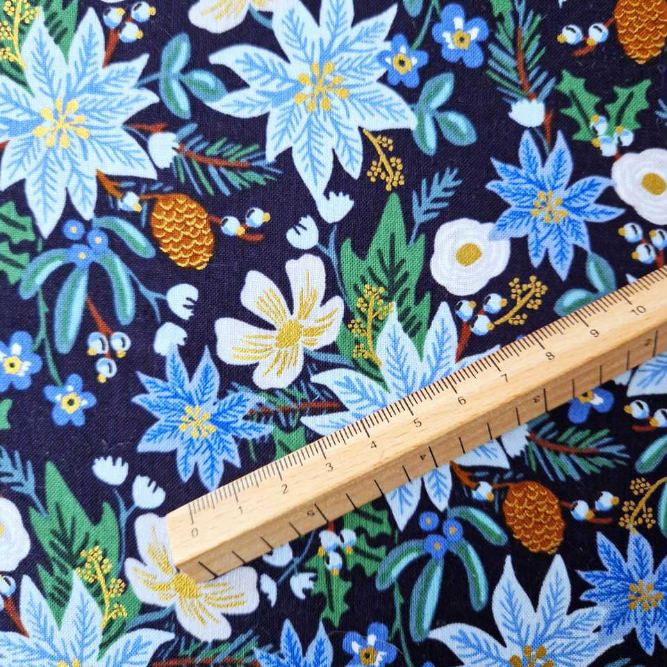Tissu Rifle Paper Co Holiday Classics Fleurs Bleu Métallisé