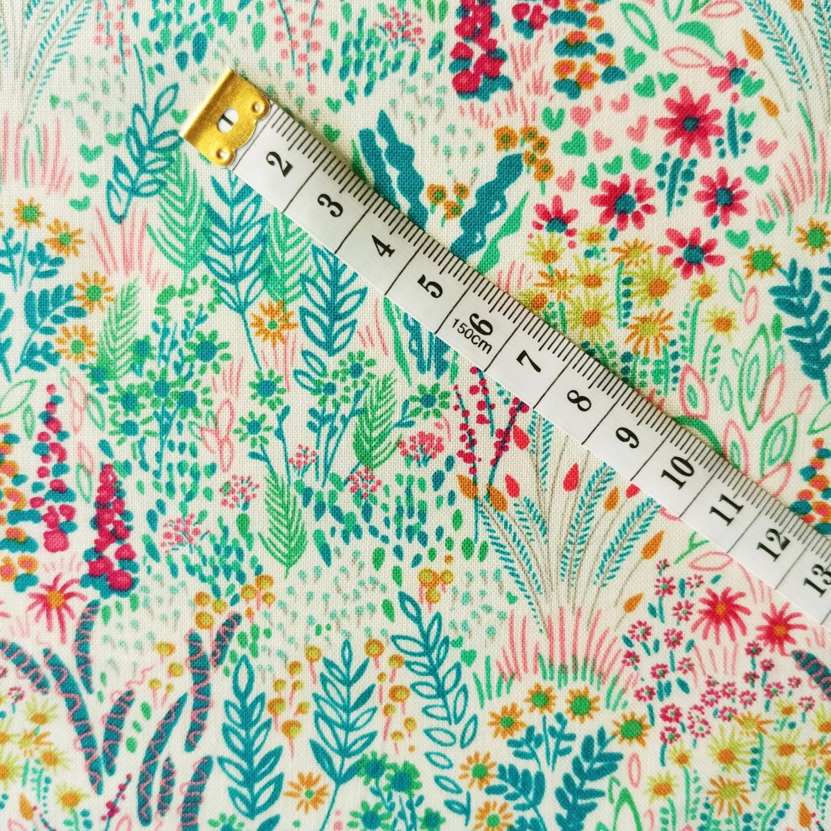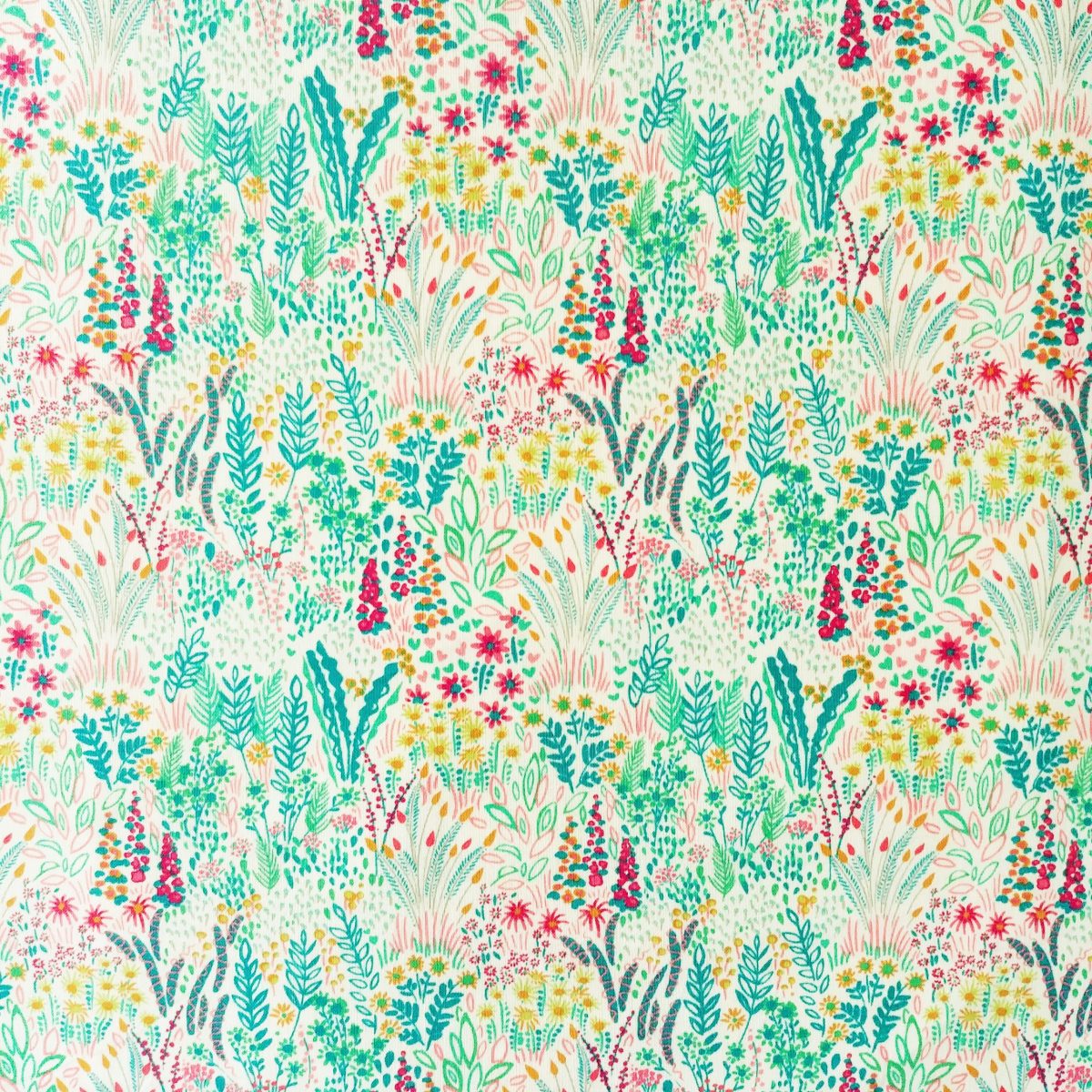 Ce tissu évoque la belle saison avec ce foisonnement et cette diversité de fleurs, de couleurs, de végéation, d'une fraîcheur incroyable, comme un tableau de Monet.