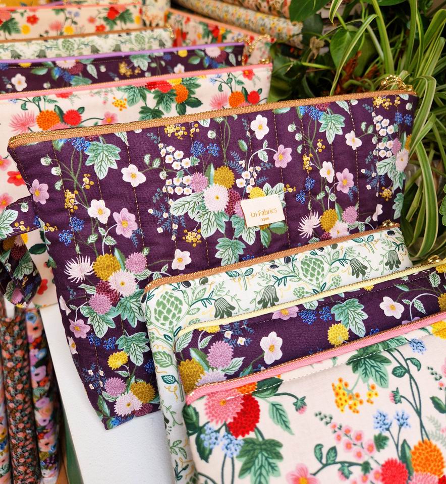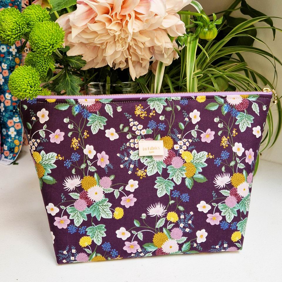 Trousse Molletonnée Fleurs Dahlia Aubergine Tissu Rifle Paper Co